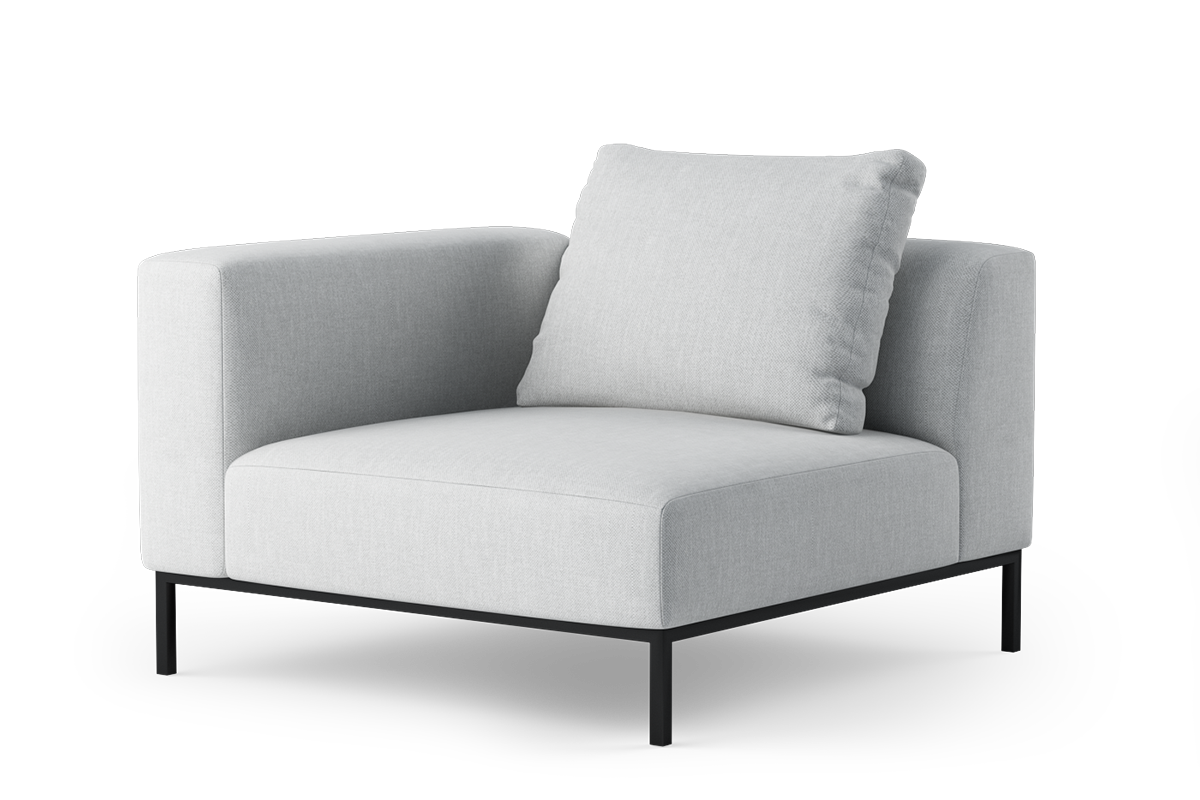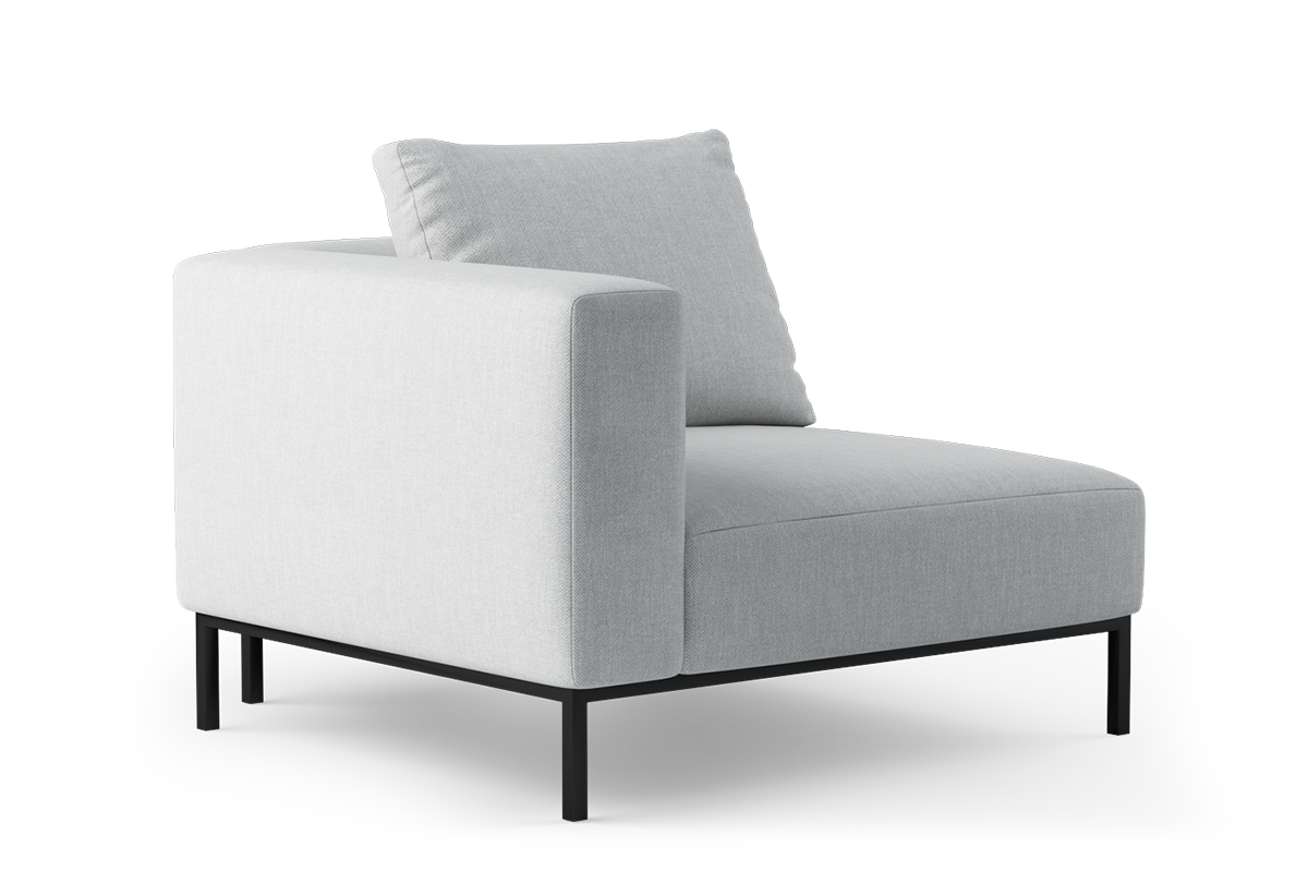 Kolekcja eleganckich, smukłych mebli, zbudowanych z modułów wspartych na wysokich metalowych nóżkach. Obszerne i głębokie moduły z poduszką, pozwalającą regulować głębokość siedziska zapewniają wygodę podczas siedzenia.
