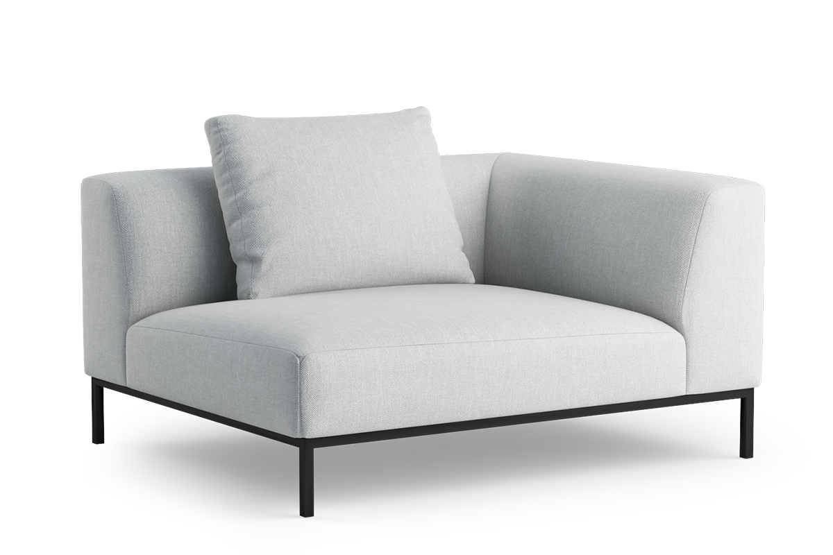 Kolekcja eleganckich, smukłych mebli, zbudowanych z modułów wspartych na wysokich metalowych nóżkach. Obszerne i głębokie moduły z poduszką, pozwalającą regulować głębokość siedziska zapewniają wygodę podczas siedzenia.