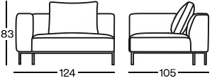 Kolekcja eleganckich, smukłych mebli, zbudowanych z modułów wspartych na wysokich metalowych nóżkach. Obszerne i głębokie moduły z poduszką, pozwalającą regulować głębokość siedziska zapewniają wygodę podczas siedzenia.
