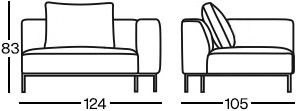 Kolekcja eleganckich, smukłych mebli, zbudowanych z modułów wspartych na wysokich metalowych nóżkach. Obszerne i głębokie moduły z poduszką, pozwalającą regulować głębokość siedziska zapewniają wygodę podczas siedzenia.