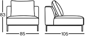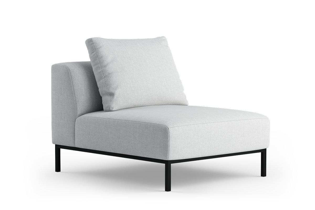 Kolekcja eleganckich, smukłych mebli, zbudowanych z modułów wspartych na wysokich metalowych nóżkach. Obszerne i głębokie moduły z poduszką, pozwalającą regulować głębokość siedziska zapewniają wygodę podczas siedzenia.