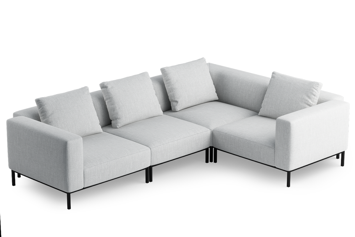 Kolekcja eleganckich, smukłych mebli, zbudowanych z modułów wspartych na wysokich metalowych nóżkach. Obszerne i głębokie moduły z poduszką, pozwalającą regulować głębokość siedziska zapewniają wygodę podczas siedzenia.