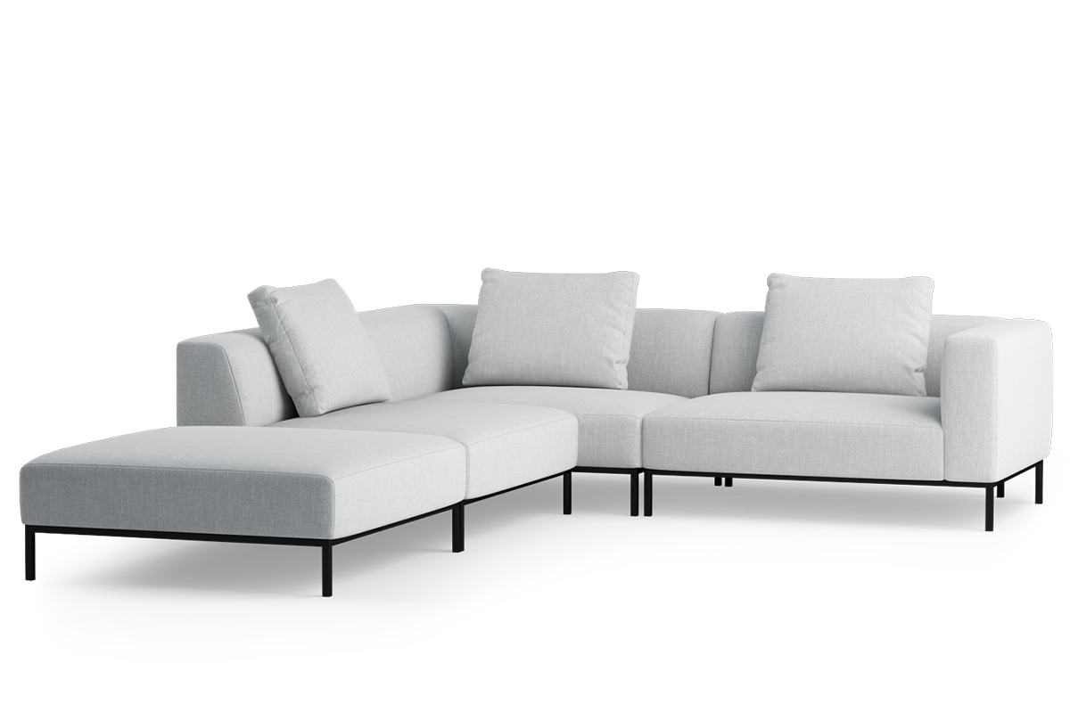 Kolekcja eleganckich, smukłych mebli, zbudowanych z modułów wspartych na wysokich metalowych nóżkach. Obszerne i głębokie moduły z poduszką, pozwalającą regulować głębokość siedziska zapewniają wygodę podczas siedzenia.