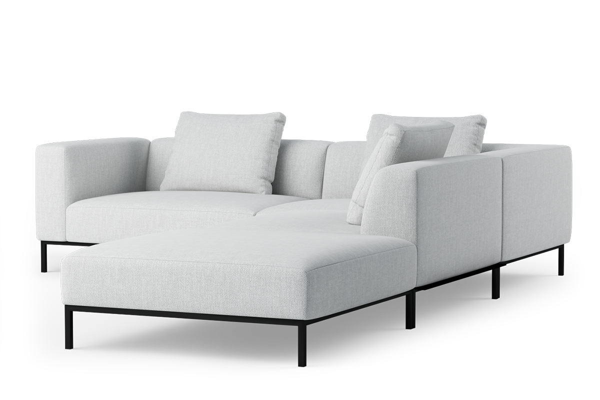 Kolekcja eleganckich, smukłych mebli, zbudowanych z modułów wspartych na wysokich metalowych nóżkach. Obszerne i głębokie moduły z poduszką, pozwalającą regulować głębokość siedziska zapewniają wygodę podczas siedzenia.