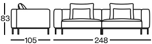 Kolekcja eleganckich, smukłych mebli, zbudowanych z modułów wspartych na wysokich metalowych nóżkach. Obszerne i głębokie moduły z poduszką, pozwalającą regulować głębokość siedziska zapewniają wygodę podczas siedzenia.