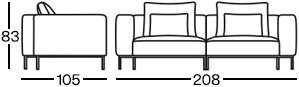 Kolekcja eleganckich, smukłych mebli, zbudowanych z modułów wspartych na wysokich metalowych nóżkach. Obszerne i głębokie moduły z poduszką, pozwalającą regulować głębokość siedziska zapewniają wygodę podczas siedzenia.