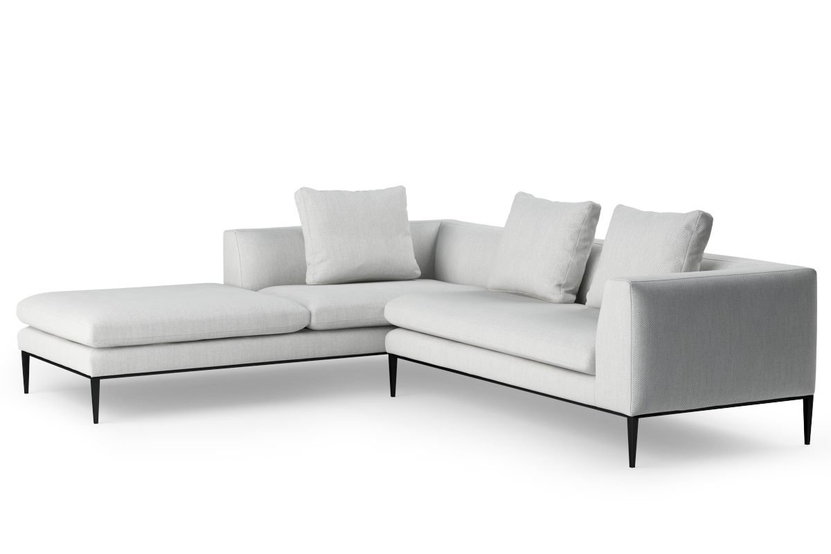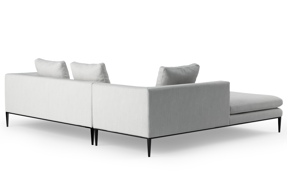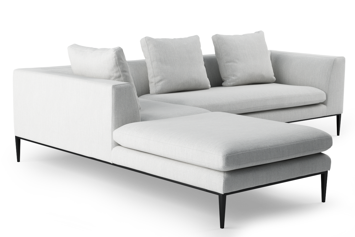 Smukłe, metalowe nogi tworzą wyjątkowy efekt wizualny. Sprawiają, że kubistyczna bryła zdaje się unosić nad ziemią. Miękko zarysowane podłokietniki płynnie przechodzą w obszerne siedziska, które zapraszają do relaksu. Stonowana paleta kolorystyczna otwiera szerokie możliwości aranżacyjne. To propozycja dla miłośników personalizacji przestrzeni. Nash pozwala komponować wnętrze według własnych potrzeb. Nie rezygnuje przy tym z designerskiej finezji.